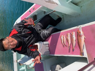 アマダイ船 Tweet アマダイ 20~43㎝ 2~4匹 シロアマダイ、マゴチ、特大イトヨリ、アヤメカサゴ、 ホウボウ、オニカサゴ他まじり 浅場でシロアマダイを主に狙い4名で出船しました。 シロアマダイは40㎝クラスを1匹ゲットで、アカアマダイは小型でした。 明日は、マダイで出船確定です。 ご希望の方は、お電話ください。